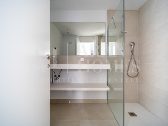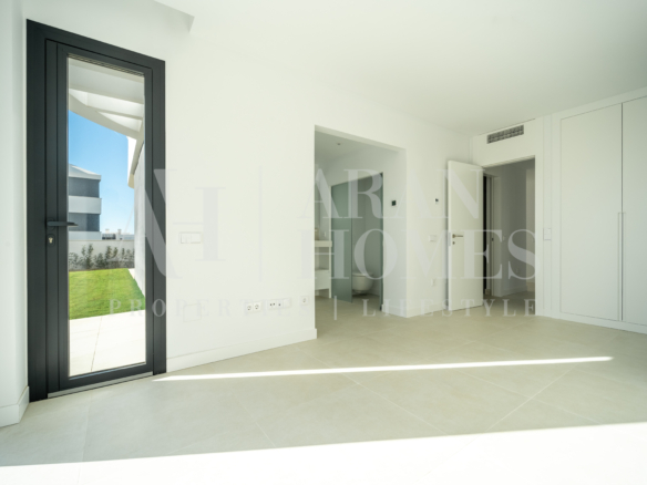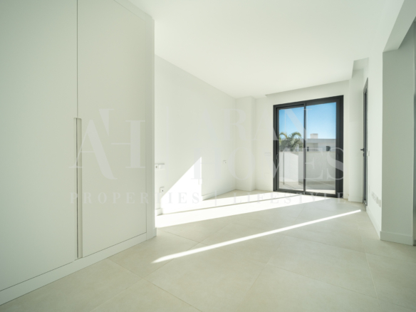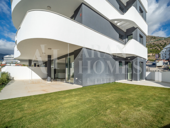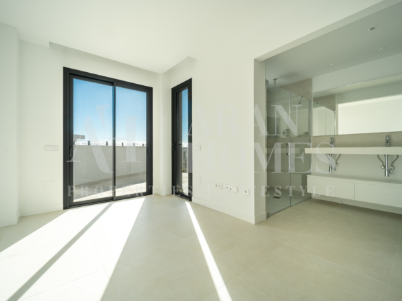 The living space boasts floor-to-ceiling sliding doors that open to a vast wrap around terrace of 35m2 offering urban, pool and partial sea views. Additionally, there is 68m2 of private garden and an outdoor shower. Spacious master bedroom with an en-suite bathroom and terrace of 18m2, perfect for enjoying the morning sunshine.