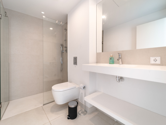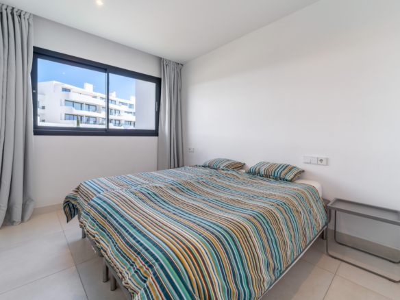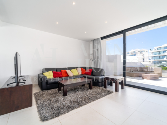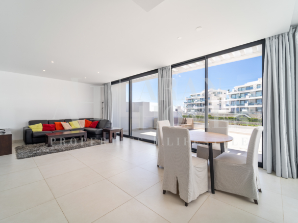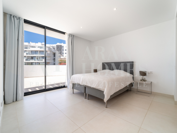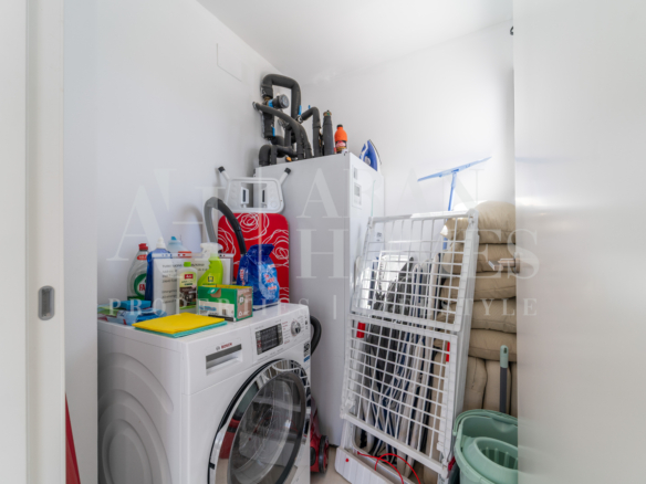 Open plan kitchen fully furnished and equipped with electrical appliances from Bosch and laundry area with washing machine/dryer. Main bedroom with ensuite bathroom and walk-in closet, 2 extra bedrooms with built-in wardrobes and guest bathroom. There is also a backside terrace of 15m2 with access from the living room.