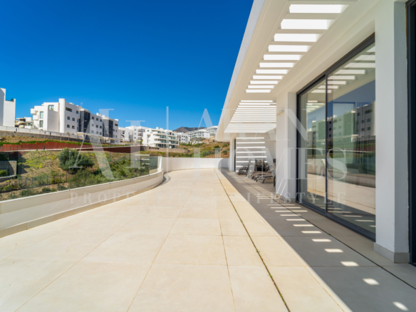 Luxury west facing penthouse, located in the exclusive urbanization of Higuerón West. Consists of entrance, hall way, spacious living-dining room with floor to ceiling glass sliding doors leading out to a large wrap around terrace of 158m2, with views of the mountains, gardens and partial sea views.