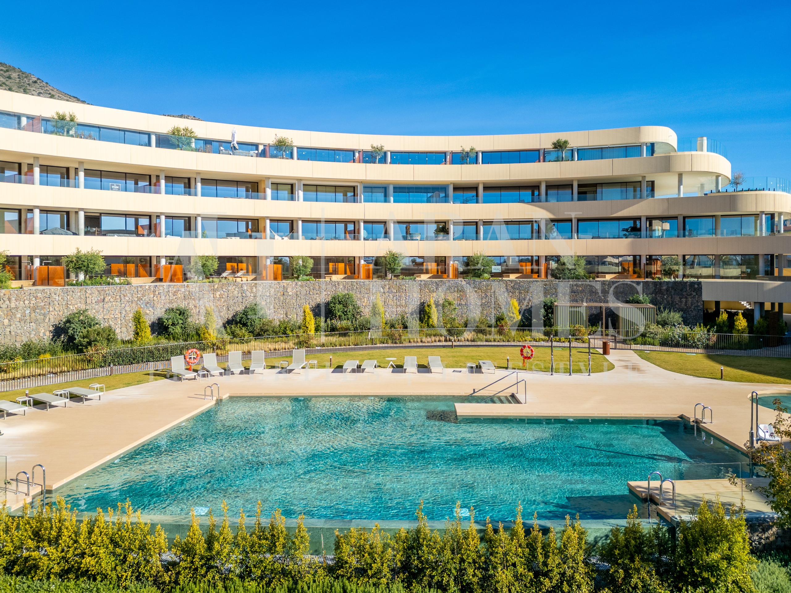 This clever design not only maximises the natural light of the Costa del Sol in both rooms, but also allows you to admire the splendid views from every corner of your home. Air conditioning hot and cold, video intercom, domotic system, pre-installation alarm system, water filter system, under floor heating in both bedrooms and bathrooms. Includes two parking spaces (one with electric car charger) and one storage room.