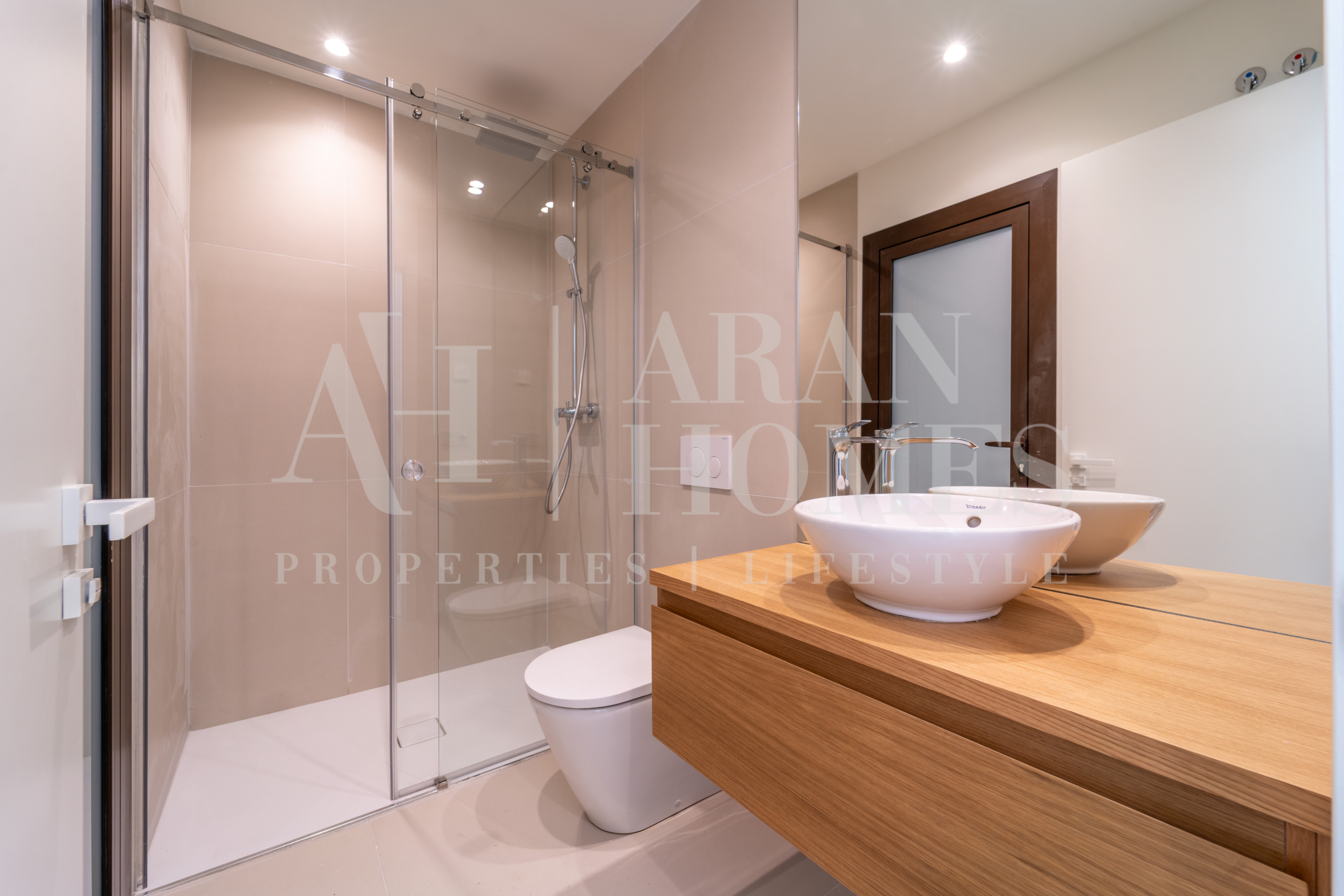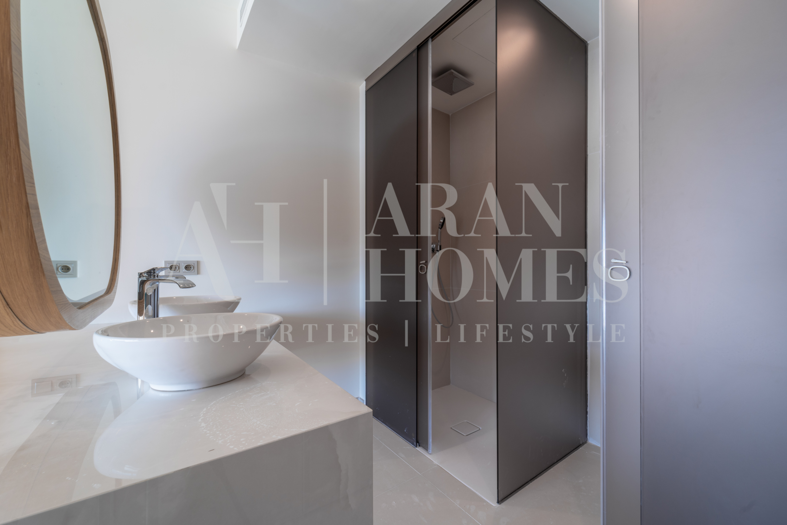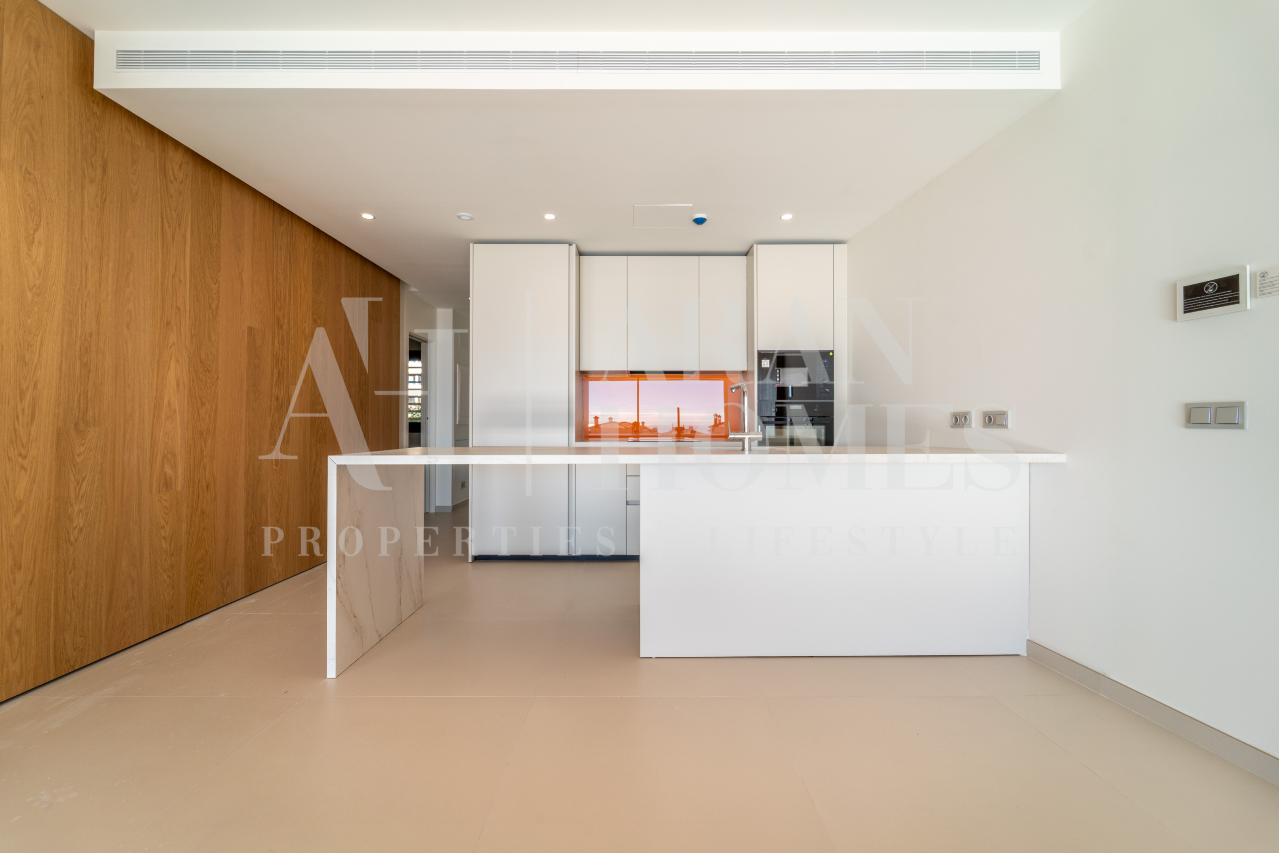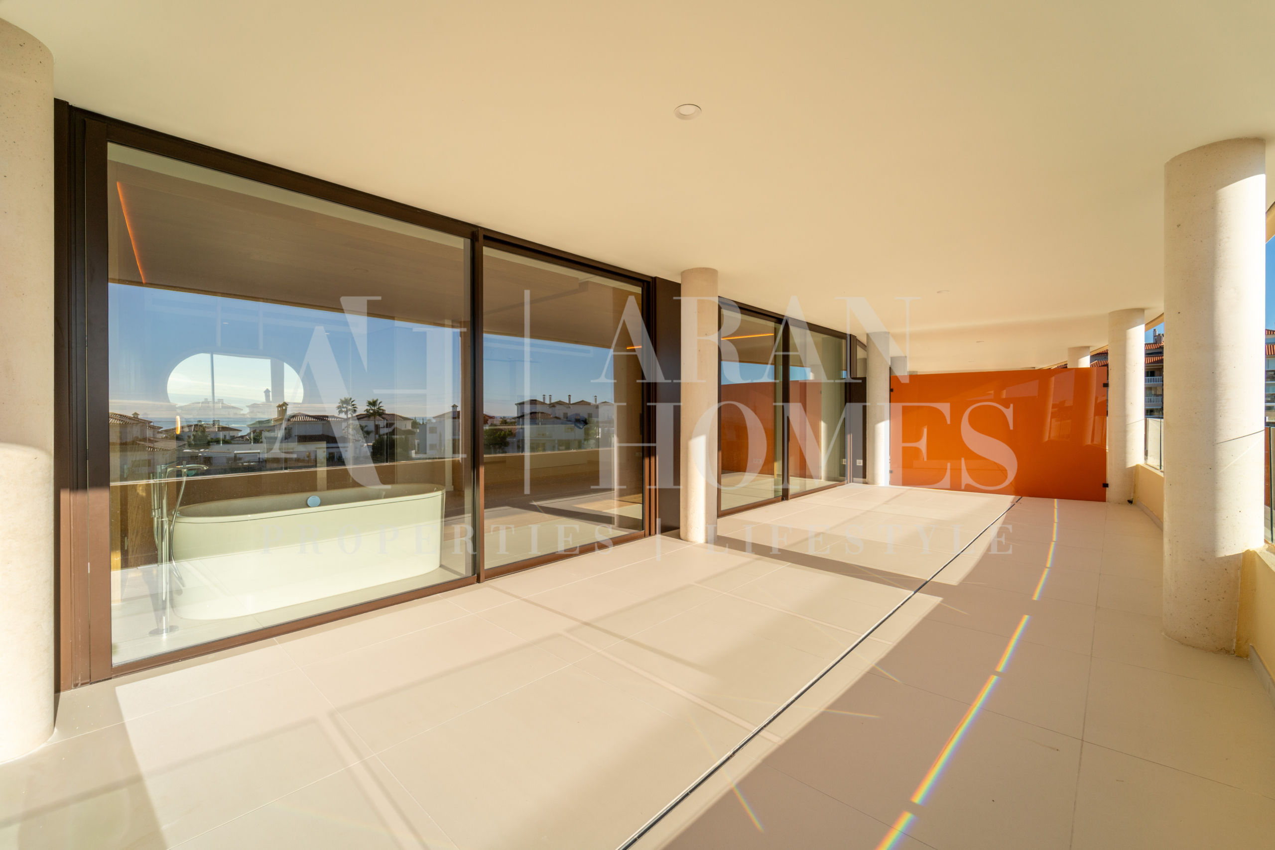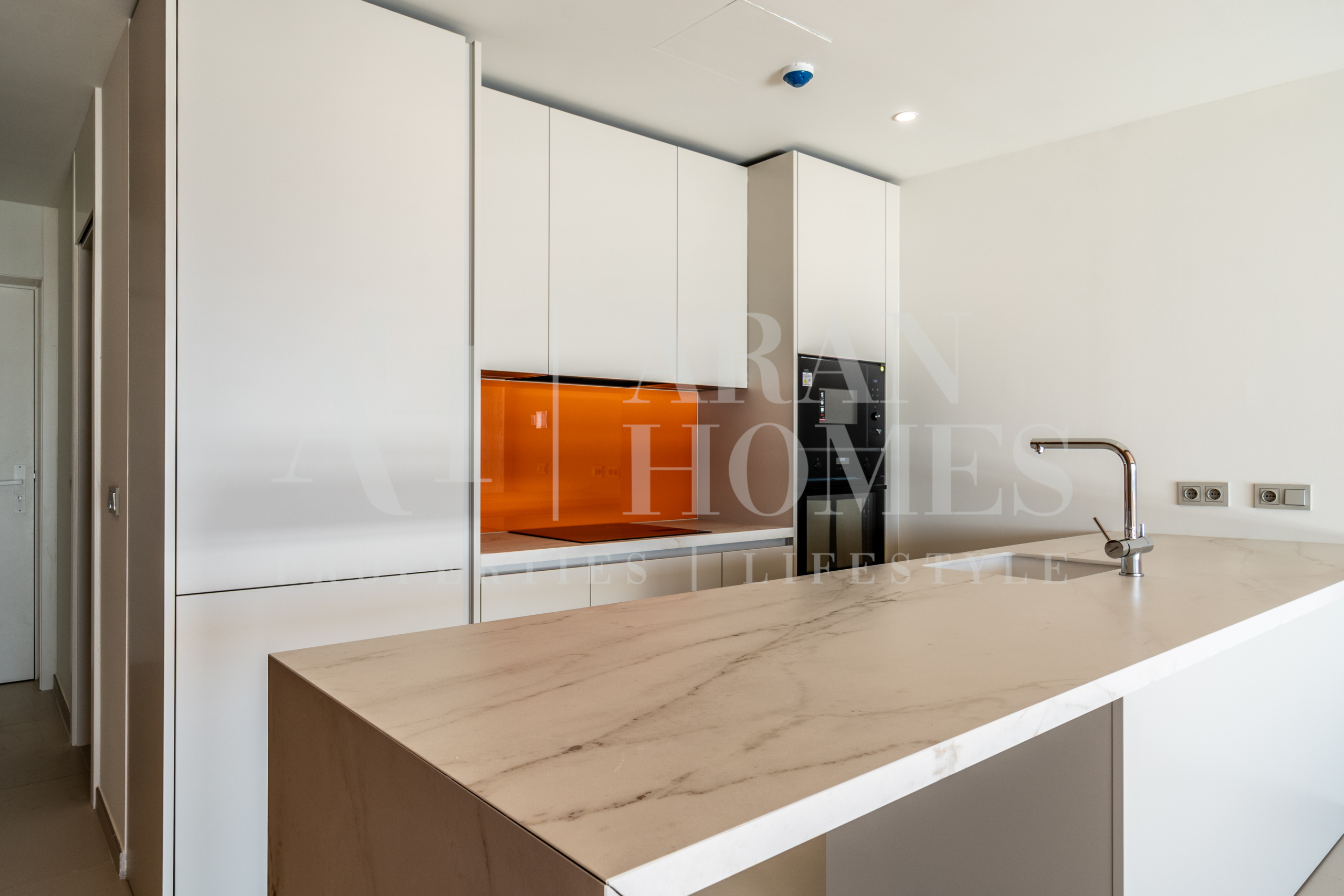 Brand new luxury south east facing apartment, located in the exclusive urbanization of South Residence, with 2 bedrooms, 2 bathrooms, spacious living-dining room, open plan kitchen fully furnished and equipped with electricial appliances from Bosch, laundry area with washing machine/dryer, large terrace of 40m2 with beautiful sea views.