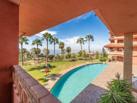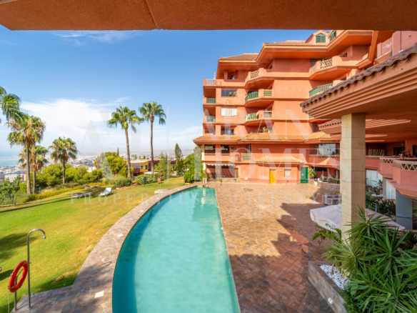 Recenlty refurbished south facing apartment located in the exclusive urbanization Reserva del Higuerón, with 2 bedrooms, 2 bathrooms, living-dining room, open plan kitchen fully furnished and equipped with electricial appliances, terrace of 37m2 with views of the Mediterranean sea, community pool and gardens.