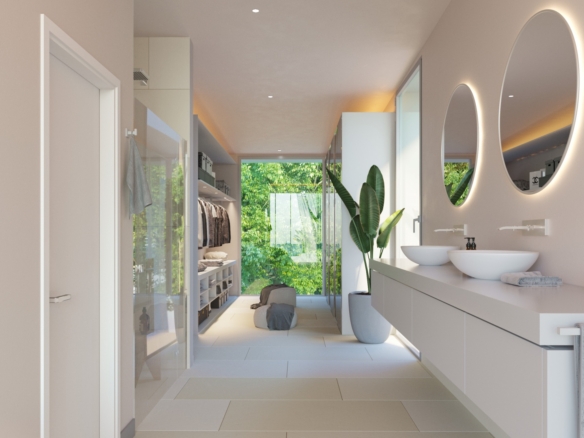 The reflection of nature and the sea envelops the bedroom in its two orientations. The private and intimate dressing room and the warmth of the lighting create an atmosphere of peace,