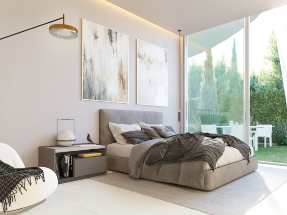 Simple and comfortable, with large sliding glass doors to access the Mediterranean garden that surrounds this villa.